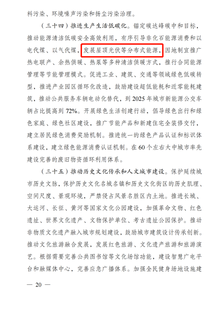 7月12日,國(guó)家發(fā)展改革委關(guān)于印發(fā)“十四五”新型城鎮(zhèn)化實(shí)施方案的通知,通知要求,推進(jìn)生產(chǎn)生活低碳化。錨定碳達(dá)峰碳中和目標(biāo),推動(dòng)能源清潔低碳安全高效利用,有序引導(dǎo)非化石能源消費(fèi)和以電代煤、以氣代煤,發(fā)展屋頂光伏等分布式能源,因地制宜推廣熱電聯(lián)產(chǎn)、余熱供暖、熱泵等多種清潔供暖方式,推行合同能源管理等節(jié)能管理模式。
