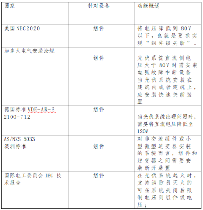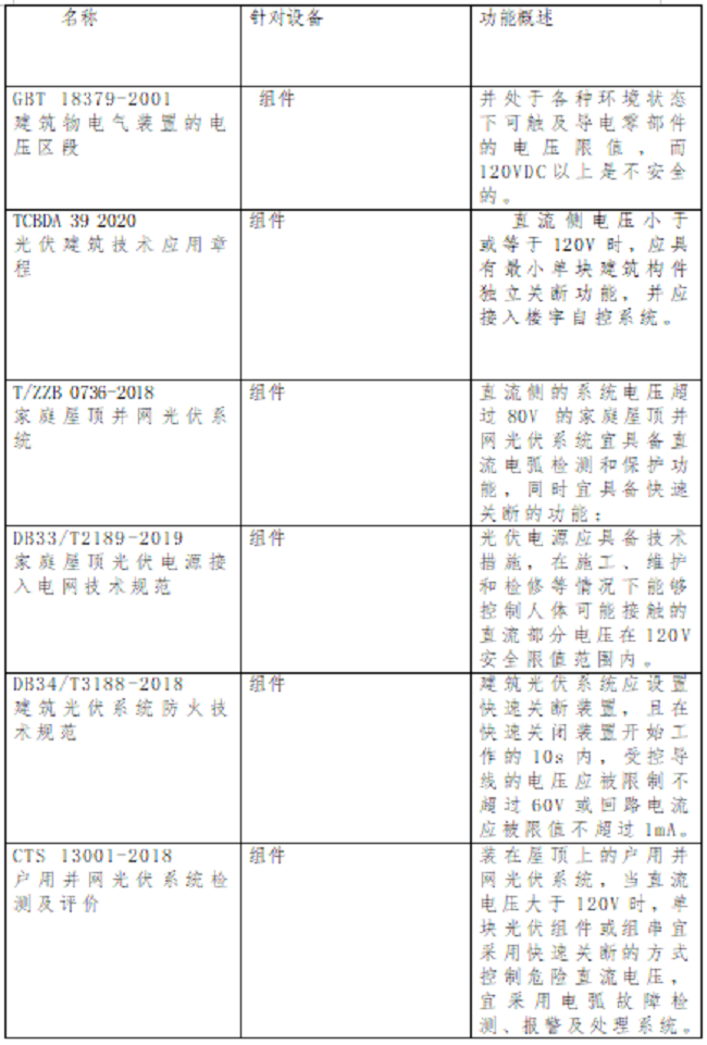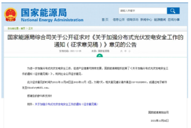 2021年11月26日,國(guó)家能源局發(fā)布了關(guān)于公開征求對(duì)《關(guān)于加強(qiáng)分布式光伏發(fā)電安全工作的通知(征求意見稿)》意見的公告。其中,在“項(xiàng)目設(shè)計(jì)管理”相關(guān)章節(jié)中明確要求:安裝電弧故障斷路器或采用具有相應(yīng)功能的組件,實(shí)現(xiàn)電弧智能檢測(cè)和快速切斷功能;光伏組件應(yīng)具有安全關(guān)斷保護(hù)功能,保證逆變器關(guān)機(jī),交流斷電后,系統(tǒng)子陣外直流電壓低于安全電壓。
